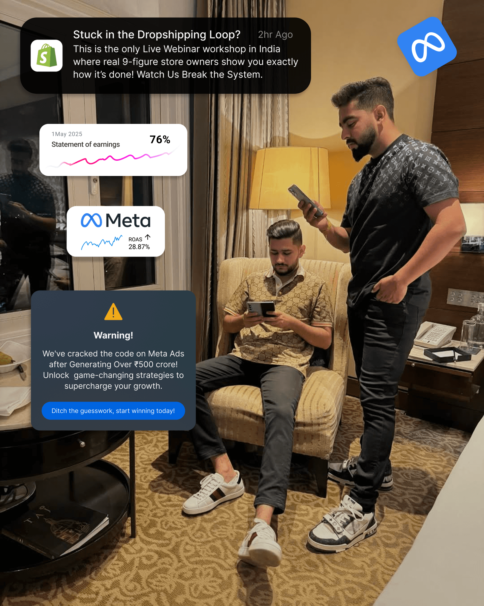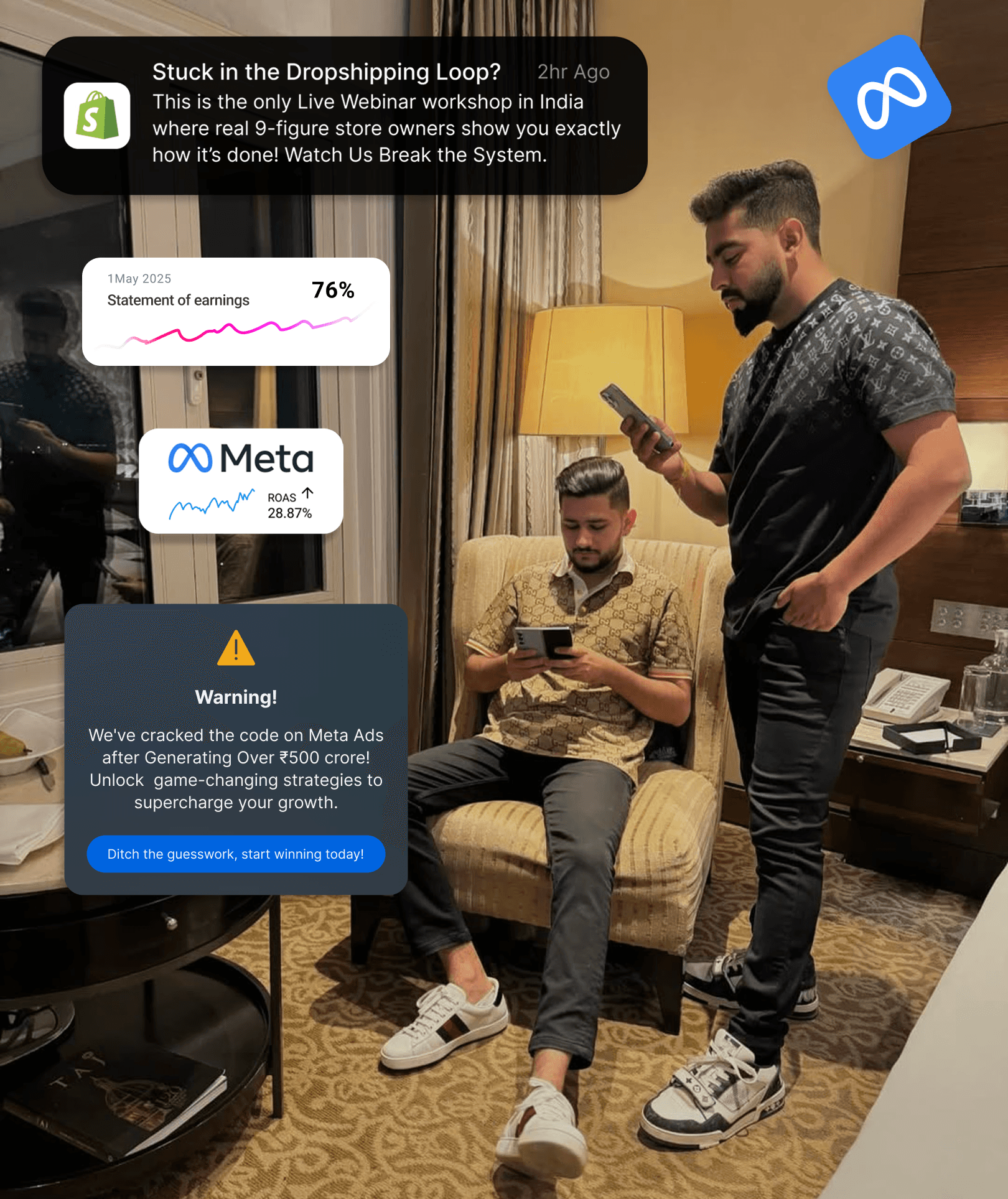 "We Spent ₹100Cr on Meta Ads & Generated Over ₹500Cr+ Dropshiping Empire Now It's Your Turn to Learn How!"